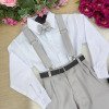 TECIDO: CAMISA BRANCA MANGA LONGA MICROFIBRA 100% POLIESTERTECIDO DA CALÇA TWILL COLORIDO 100% POLIESTER Conjunto composto por: Camisa social na cor Branca manga longa, gravata borboleta bege calça na cor bege, suspensorio begee Cinto marrom Demais peças ou acessórios, não inclusos. Calçados Vendindos Separadamente * LEMBRANDO QUE PODERA HAVER VARIAÇÃO DE TONALIDADE DO PRODUTO DEPENDENDO DA TELA DO SEU DISPOSITIVO
