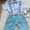Este conjunto social infantil é a escolha perfeita para deixar os pequenos elegantes e confortáveis em eventos como casamentos, batizados, aniversários, formaturas e cerimônias em geral. Com um visual sofisticado, ele é ideal para quem busca estilo com praticidade. Detalhes do Produto: Camisa social branca de manga curta, confeccionada em microfibra 100% poliéster, com toque macio e caimento leve. Short azul bebe em linho 70% poliéster/16% viscose/11% linho/3% algodão, com acabamento moderno na barra dobrada. Acompanha gravata borboleta azul bebe, suspensório azul bebe com regulagem e cinto ajustável branco com fivela metálica. Itens Inclusos:CamisaShortGravata borboletaSuspensórioCinto Calçado não incluso – vendido separadamente. Disponivel em nosso site na categoria calçados meninosAs tonalidades das peças podem variar de acordo com as configurações de tela do seu dispositivo.Para garantir o ajuste ideal, consulte sempre a nossa tabela de medidas antes de finalizar a compra. As medidas podem apresentar pequenas variações conforme o lote de fabricação.
