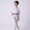 Conjunto Social Infantil Vitor – Estilo e Elegância para Momentos Especiais Este conjunto social infantil é a escolha perfeita para deixar os pequenos elegantes e confortáveis em casamentos, batizados, aniversários, formaturas e cerimônias em geral.Com um visual sofisticado e moderno, é ideal para quem busca estilo com praticidade e ótimo caimento. Detalhes do Produto: Camisa social branca de manga longa, confeccionada em microfibra 100% poliéster, com toque macio, leve e confortável; Calça linho em 70% poliester, 16% viscose, 11% linho, 3% algodão, com corte reto e caimento elegante; Gravata borboleta linho, combinando com o tom da calça; Suspensório linho com regulagem ajustável; Cinto marrom com fivela metálica, ajustável. Atenção: Calçados e demais acessórios vendidos separadamente; Produto delicado: recomendamos lavagem à mão com sabão neutro; Tonalidade pode variar de acordo com o lote; As medidas podem variar em até 2cm. Recomendamos sempre consultar a tabela de medidas antes da compra para evitar erros. As cores do produto podem sofrer variações de tonalidade conforme a configuração da tela do seu dispositivo.