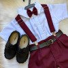 Este conjunto social infantil é a escolha perfeita para deixar os pequenos elegantes e confortáveis em eventos como casamentos, batizados, aniversários, formaturas e cerimônias em geral. Com um visual sofisticado, ele é ideal para quem busca estilo com praticidade. Detalhes do Produto: Camisa social branca de manga curta, confeccionada em microfibra 100% poliéster, com toque macio e caimento leve. Short preto em twill 100% poliéster, com acabamento moderno na barra dobrada. Acompanha gravata borboleta marsala, suspensório preto com marsala e cinto ajustável preto com fivela metálica. Itens Inclusos:CamisaShortGravata borboletaSuspensórioCinto Calçado não incluso – vendido separadamente. Disponivel em nosso site na categoria calçados meninosAs tonalidades das peças podem variar de acordo com as configurações de tela do seu dispositivo.Para garantir o ajuste ideal, consulte sempre a nossa tabela de medidas antes de finalizar a compra. As medidas podem apresentar pequenas variações conforme o lote de fabricação.
