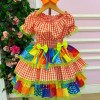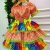 Vestido Junino Banana Club Luxo Quermesse do Sertão Laranja