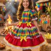 Vestido Infantil Junino  Confeccionado em tecido Tecnosport, esse vestido oferece um caimento impecável, sofisticado e confortável, perfeito para as comemorações mais queridas do ano. Um modelo que une o clássico das festas juninas com acabamento delicado e bem estruturado. Detalhes do modelo• Tecido principal: 100% Poliéster (Tecnosport Plus)• Forro do corpo: 100% Poliéster• Forro da saia: 100% PoliésterIdeal paraFestas Juninas e Julinas, apresentações escolares, quadrilha, São João e eventos temáticos no estilo caipira.     Informações Importantes  As medidas podem variar em até 2cm. Recomendamos sempre consultar a tabela de medidas antes da compra para evitar erros.  Tecido 100% poliester Para um volume extra, indicamos o uso de saiote de armação, vendido separadamente na categoria Acessórios. Tiara e outros acessórios não acompanham o produto, mas estão disponíveis em nosso site. Calçado vendido separadamente, disponível na categoria Calçados