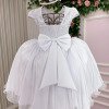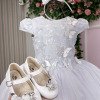 Um verdadeiro sonho em forma de vestido! Com design delicado e cheio de encanto, o Vestido Sabrina é perfeito para ocasiões especiais como aniversários, batizados, casamentos ou ensaios temáticos. O modelo possui corpete estruturado com bordados florais e aplicações de borboletas 3D com detalhes em strass e pérolas, que trazem movimento e sofisticação. A saia em camadas de tule com acabamento ondulado cria um caimento leve e volumoso, digno de uma princesa. O laço completa o visual com elegância e harmonia.  Destaques do modelo: Aplicações de borboletas com strass e pérolas Bordados florais delicados no busto Saia rodada com camadas de tule Acabamento ondulado e leve Tecido Renda 100% poliester Tecido Tule 100% poliester Tecido Tecnosport 100% poliester Tecido Aplique Borboletas 100% Poliamida Perfeito para temas como Jardim Encantado, Borboletas, Formatura, Daminha e FloristaUm vestido que transforma cada momento em pura magia!   Informações Importantes A renda do peito pode variar. As medidas podem variar em até 2cm. Recomendamos sempre consultar a tabela de medidas antes da compra para evitar erros. Para um volume extra, indicamos o uso de saiote de armação, vendido separadamente na categoria Acessórios. Tiara e outros acessórios não acompanham o produto, mas estão disponíveis em nosso site. Calçado vendido separadamente, disponível na categoria Calçados As cores do produto podem sofrer variações de tonalidade conforme a configuração da tela do seu dispositivo.