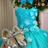 Vestido Juvenil Vila Lele Regata Flores Verde Tiffany