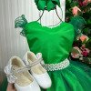 Apresentamos o Vestido Longo Amanda , uma peça sofisticada que combina elegância e delicadeza em cada detalhe. Ocasiões Indicadas: Ideal para casamentos (como dama de honra ou convidada), batizados, aniversários, formaturas e outros eventos especiais que pedem um visual inesquecível.   Detalhes do Vestido: Confeccionado em tecido verde bandeira com acabamento impecável. Mangas Cisne curta com efeito de babadinhos em tule, trazendo um toque de leveza. Cintura marcada por um cinto de pérolas, realçando o charme da peça. Saia ampla em camadas de tule com caimento sutil, conferindo movimento e volume encantador. Tecido 100% poliester/ Forro Corpo 100% poliester/ Forro Saia 100% poliester Informações Importantes As medidas podem variar em até 2cm. Recomendamos sempre consultar a tabela de medidas antes da compra para evitar erros. Para um volume extra, indicamos o uso de saiote de armação, vendido separadamente na categoria Acessórios. Tiara e outros acessórios não acompanham o produto, mas estão disponíveis em nosso site. Calçado vendido separadamente, disponível na categoria Calçados. As cores do produto podem sofrer variações de tonalidade conforme a configuração da tela do seu dispositivo.