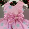 Confeccionado em tecido misto possui forro em poliéster e algodão para não incomodar a criança e proporcionando um caimento incrível e sofisticado, possui gola redonda, comprimento médio, mangas curtas, possui elástico nas costas para melhor ajuste, acabamento com lindo laço na parte posterior do vestido completa o look dos sonhos!   * Medidas podem variar em até 4cm * Caso queira o vestido mais armado, recomendamos o uso do saiote ou anágua de armação, disponível no nosso site na categoria acessórios. * Tiara vendida separadamente, disponível em nosso site na categoria acessórios.